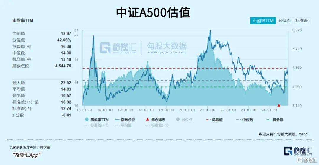 从估值看,即使经历近期反弹,指数估值仍处于相对低位。Wind数据统计,截至2024年11月25日,中证A500指数市盈率(TTM)为13.97倍,处于过去十年历史42.66%分位;估值仍处合理区间,具备长期投资价值。