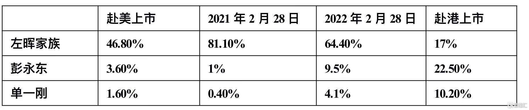 而当时一个解决方案就是左晖的家庭成员同意将享有10票投票权的B类股转换为每股只有1票的A类股。紧随其后,为满足这一要求,在2021年11月8日,由彭永东通过Ever Orient International Limited持有的A类普通股以1:1的比例置换为B类普通股,而左晖家族则将自己持有的同样数量的B类股转为A类股。这一股权结构的调整,为后续的控制权稳定奠定了基础。