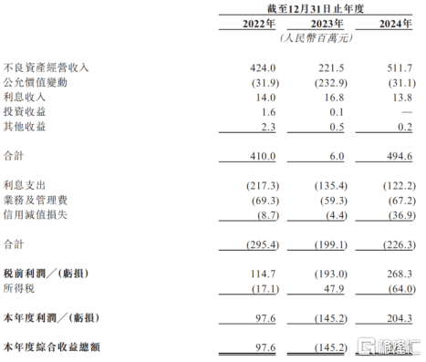公司还存在业务经营风险。不良资产组合质量波动影响显著,2023年因资产估值下降录得2.33亿元公允价值损失。再者,尽职调查与估值依赖主观判断,若数据不准确可能导致收购定价偏差,2024年公司预期信用损失计提率升至25.5%,反映信用风险加剧。