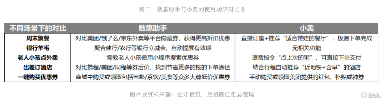 用一句话总结下来:“小美”解决的是“帮你下单”,那么数恵助手则更擅长于“帮你选、帮你省”——从不同客户类型出发,如果用户是“懒人党”,那么“小美”擅长的一步到位、一站式服务能够提供更大吸引力;如果用户是“省钱党”,那么“数惠助手”更懂“薅羊毛”的优势能力与定位标签则无出其右。