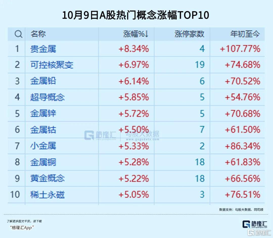 板块表现中,除了在假期中被显著抢跑的贵金属和有色板块强势大涨外,可控核聚变、超导、金属新材料等新赛道也表现较为出色,盘中涨幅都超过了5%。