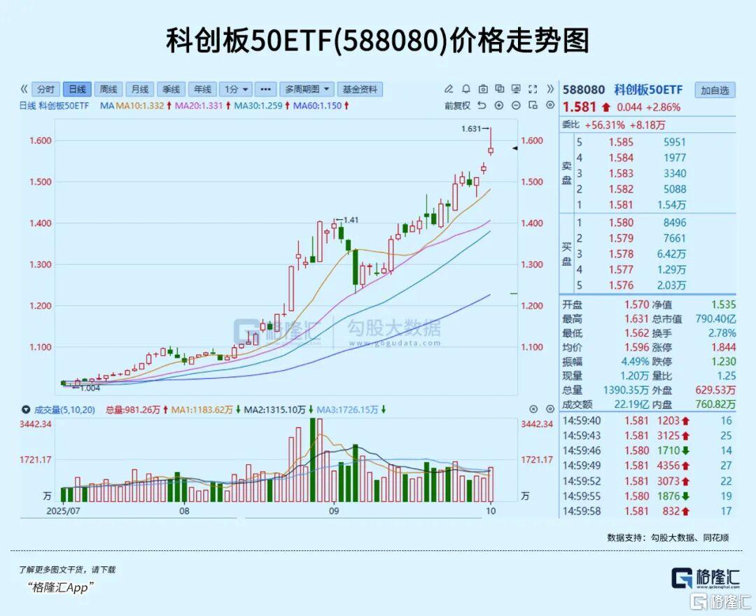 值得一提的是,由于不少这些赛道股都是在科创板上市,由此科创板50ETF(588080)今天也大涨2.86%,领跑宽基ETF。