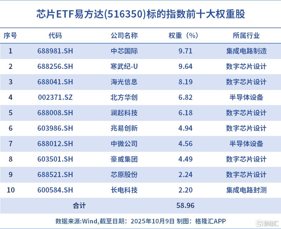 而芯片ETF易方达(516350)近5日连续“吸金”,资金净流入额超1亿元,其跟踪中证芯片产业指数,涉及芯片设计、制造、封装与测试等领域公司,聚焦AI芯片,成分股中既包含中芯国际等成熟龙头,也涵盖寒武纪、海光信息等AI芯片领域高成长企业,兼顾产业稳定性与创新活力;综合费率0.2%/年,同类最低。