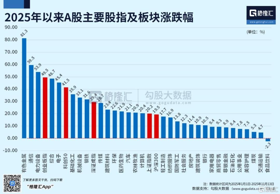 数据显示,今年以来,A股90只有色概念股中,已共有60股涨幅超过50%,其中有超过30股更是实现了市值翻倍,这造就了有色金属的涨幅在今年所有板块中整体高达81.32%,处于遥遥领先的地位,甚至显著跑赢了被市场热捧的AI和机器人等热门赛道板块。