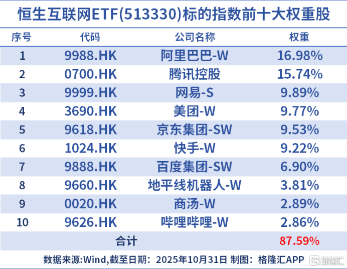 其中,恒生互联网ETF(513330)跟踪的恒生互联网科技业指数飙涨3.88%,是涨幅最猛的港股科技指数。