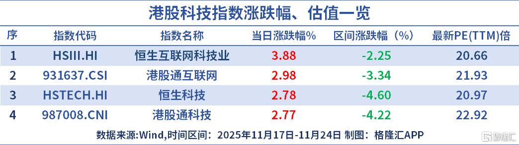 值得一提的是,恒生互联网科技业指数11月17日至今累计回调2.25%,是跌幅最小的港股科技指数,展现出特有的韧性。