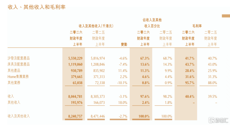 如果单只看营收数字,此前敏华控股的这份中期报告似乎并不算太亮眼,期内实现总收入约80.45亿港元,同比下降约3.1%。不过从盈利端来看,公司权益拥有人应占溢利约为11.46亿港元,同比逆势增长0.6%。与此同时,毛利率提升0.9个百分点至40.4%,净利率亦上升0.5个百分点至14.2%。