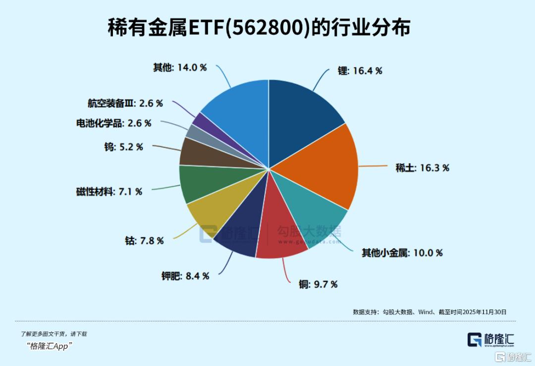 稀有金属ETF(562800)跟踪的,全市场锂矿概念含量最高(占比达到41.59%)的指数--CS稀金属指数,今天强势领涨,上涨幅度达到4.21%。
