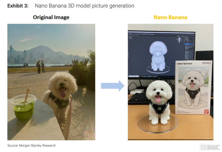 Nano Banana和美图产品的“AI手办”效果对比。来源:摩根士丹利研报