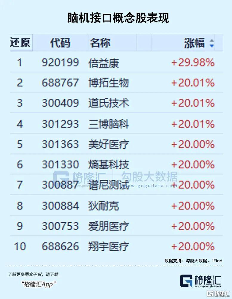 具体来看,脑机接口板块早盘掀起涨停潮,倍益康30cm涨停,三博脑科、美好医疗、翔宇医疗等超20股涨停。
