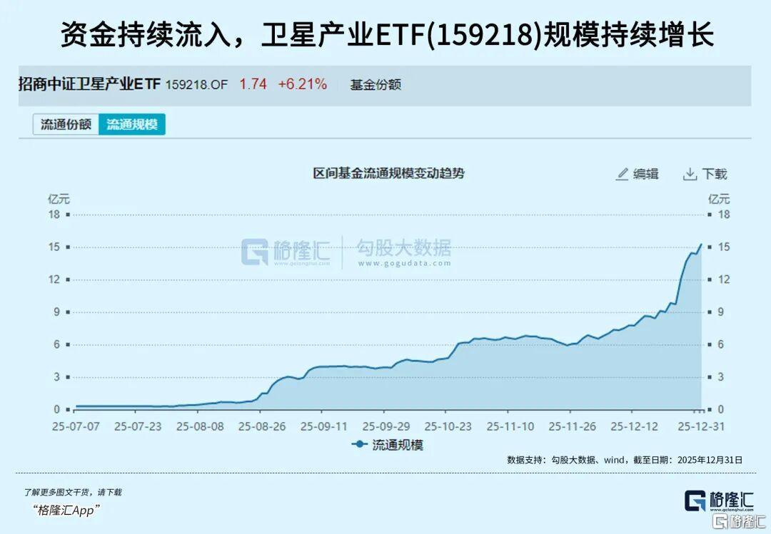 元旦回来赛道延续攻势,卫星产业ETF(159218)跟踪的标的指数大涨3.78%,盘中资金抢筹积极,净流入量直接创下单日新高。