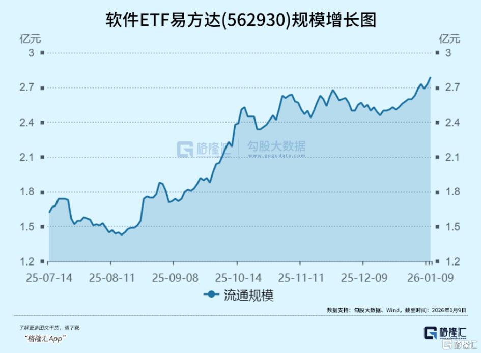 软件ETF易方达(562930),去年净流入1.73亿元,最新规模较去年年初跃升213%。