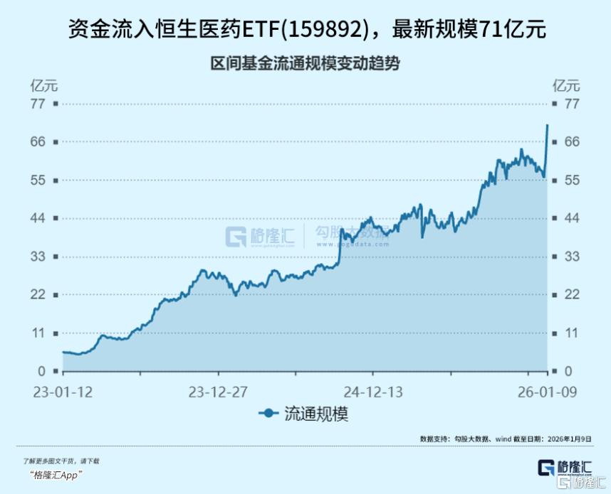 随着美联储降息周期的开启,全球生物医药投融资环境有望进一步改善,作为对利率敏感的资产,港股创新药板块有望迎来估值与业绩的“戴维斯双击”。资金今年也在持续流入恒生医药ETF(159892),近5日资金净流入8.2亿元,今年以来6个交易日涨13.56%。