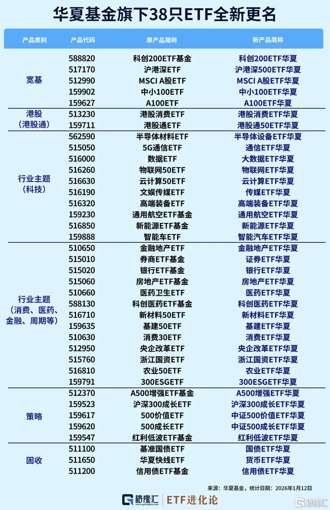 作为公募行业的领军者华夏基金率先行动。1月12日,旗下38只ETF集体更名!