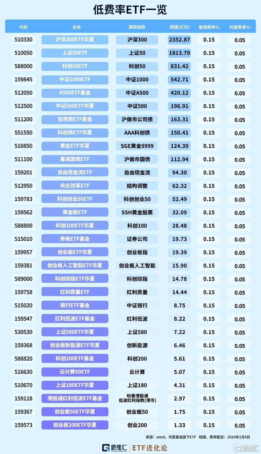 头部担当:30只低费率ETF