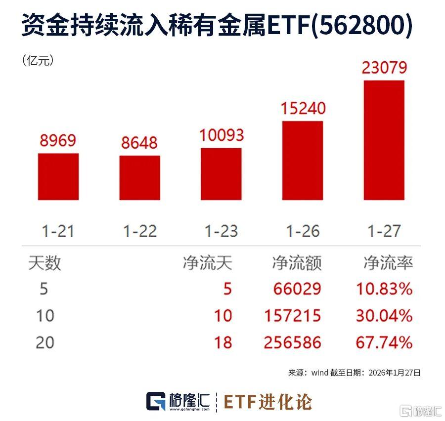 本轮历史性行情中,稀有金属ETF(562800)的资金与规模迎来巨变。