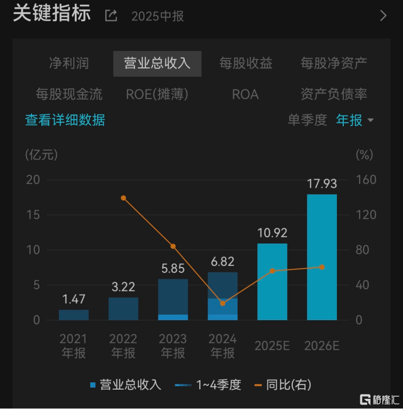 根据业绩预告,迅策预计2025年全年收入约12.83亿元人民币,相比2024年的6.3亿元同比增长102.95%;结合2025年上半年的收入数据计算,其下半年收入环比暴增约448%。