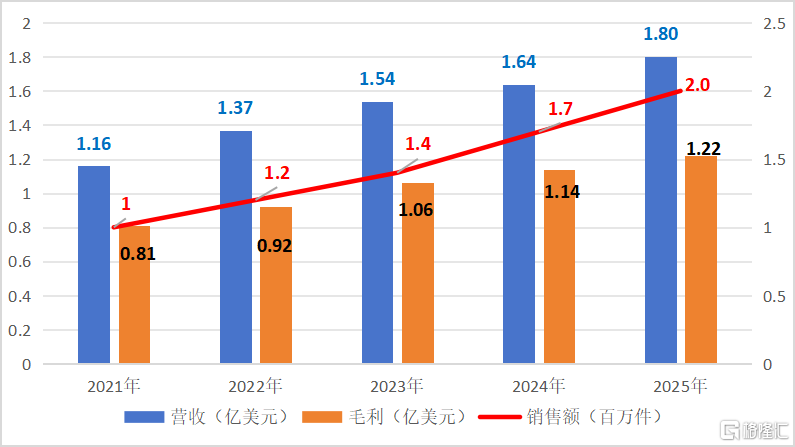 财报显示,收入与销量连续五年创历史新高。2025年,公司实现总收入1.8亿美元,同比增长10%。期内产品销售量达202万件,同比增长16.2%,其中自有产品销量与第三方产品销量分别同比增长13.1%和34.9%,核心业务增长动能坚实。