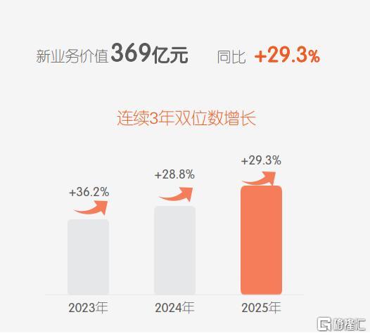 2025年,平安寿险及健康险业务新业务价值达到368.97亿元,同比增长29.3%,连续3年双位数增长。