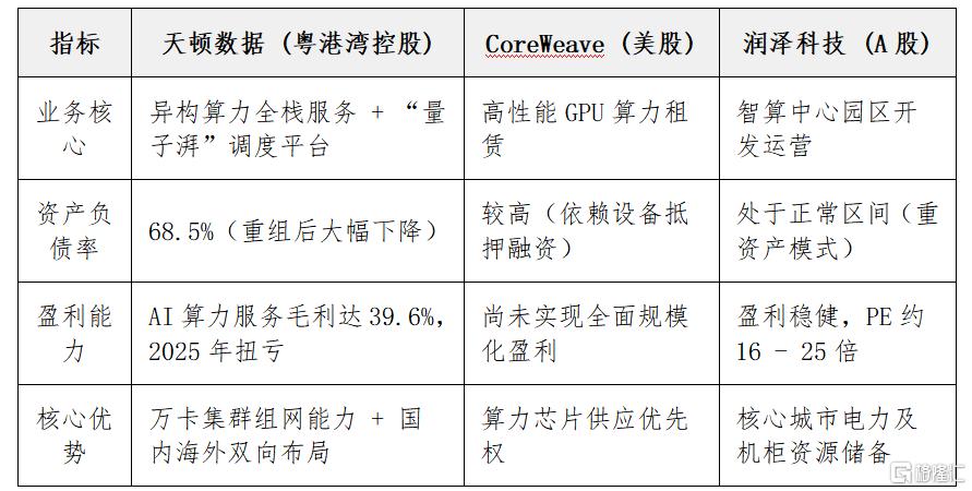 解读: 相比于纯重资产的IDC模式,天顿数据通过“量子湃”平台实现的“算力池化管理”更接近CoreWeave的算力云模式,且在当前国内普惠算力与“算电协同”政策下,盈利释放速度更快。
