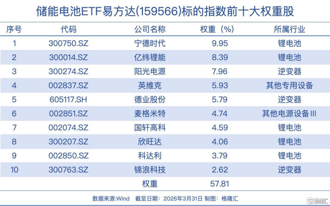 储能电池ETF易方达(159566)是全市场规模最大的聚焦储能核心贝塔的ETF产品;其覆盖储能电池核心环节,包括电池制造、储能系统集成、液冷、逆变器等环节,联接基金(A/C:021033/021034)。