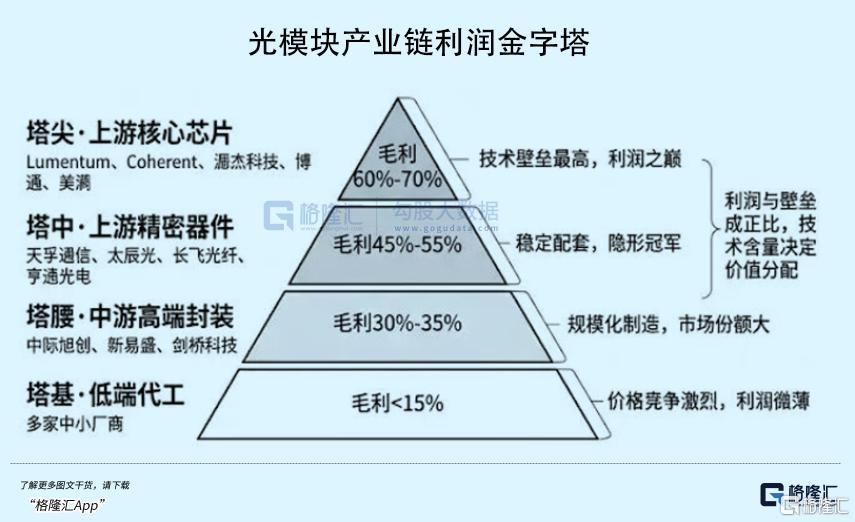 市场长期把光模块归类为劳动密集型的器件封装组装行业。逻辑很简单:光模块厂商采购光电芯片和器件进行封装,话语权受制于上游。而产业链价值集中于芯片和器件,封装环节利润薄、门槛低。
