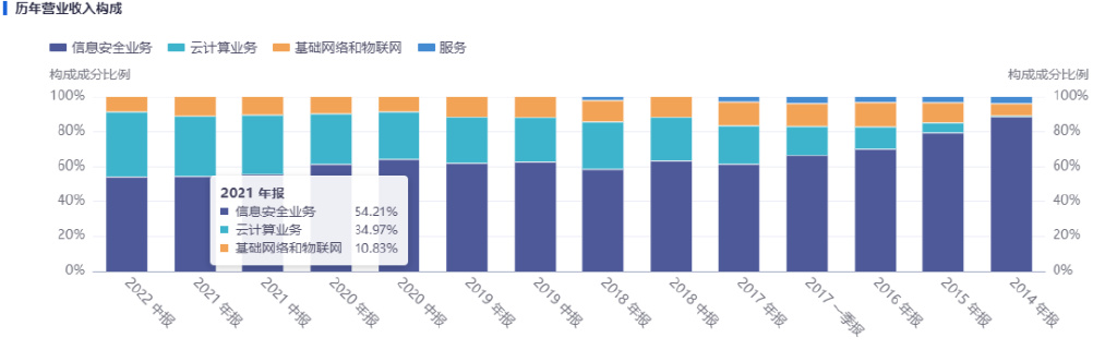 2012年开始,深信服在网络安全业务的基础上,不断拓宽产品线。现在深信服旗下拥有智安全、信服云和新IT三大业务品牌,对应网络安全、云计算和IT基础架构三大业务板块,而公司的全资子公司信锐技术主要聚焦于企业级无线和物联网业务。