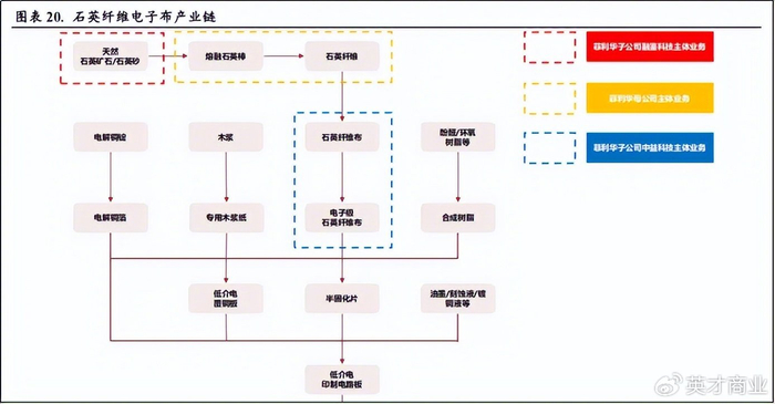 至此,电子布这一细分赛道中,菲利华实现了产业链的布局。上游原材料石英矿、石英砂由融鉴科技提供,中游从熔融石英棒到石英纤维由母公司菲利华负责,而中益科技将石英纤维颗粒拉丝后制成石英纤维(棒)进而制成Q适应纤维布,继续深加工就成了电子级石英纤维布。