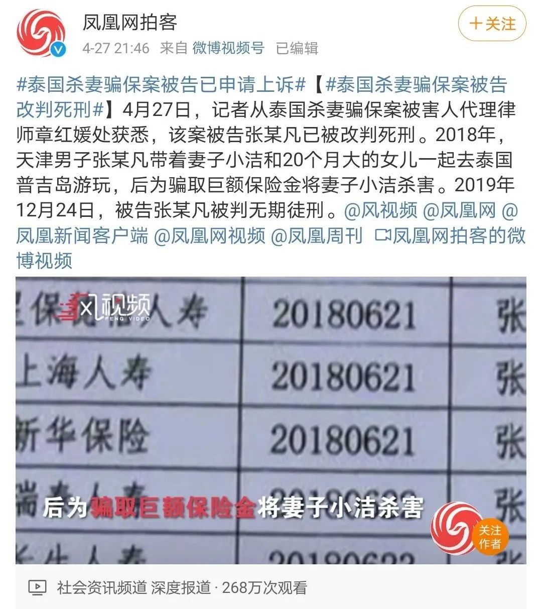 但这类事件并没有反思到保险公司头上去,这是一个事实,这很不应该,起码泰国杀妻骗保案中,保险公司应该承担非常重大的责任。