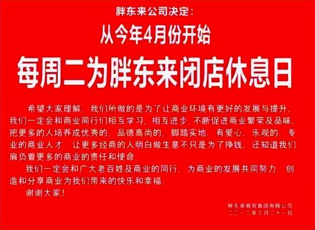 他的胖东来,全公司周二放假不说,还一句话得罪全国同行。“加班就是不行,是不道德,无耻!”