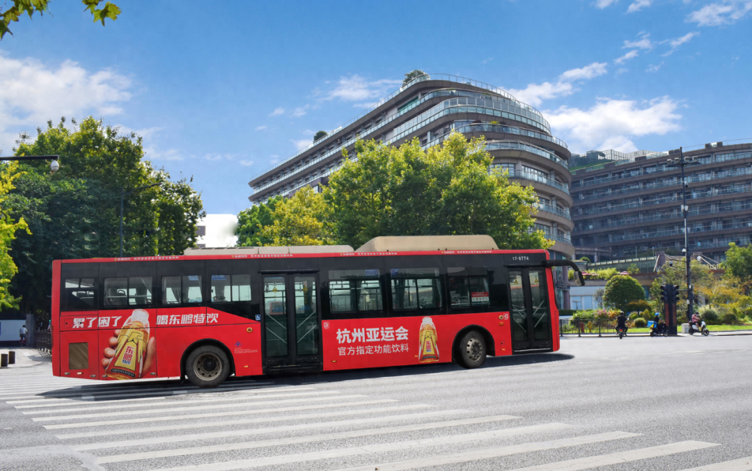 像今年亚运会期间,无论是电梯媒体、户外广告牌还是公交站台都能看到东鹏特饮的各个产品。