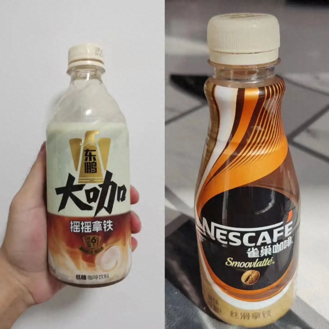 东鹏大咖对标雀巢瓶装咖啡,容量比雀巢多62ml,价格却低7毛钱。