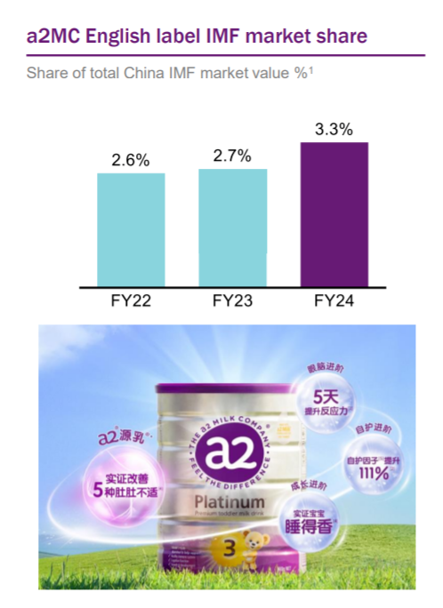 “我们持续贯彻增长战略,首先聚焦中国市场,实现了积极的24财年业绩,营收和EBITDA增长强劲。”a2牛奶公司总经理兼首席执行官David Bortolussi表示。