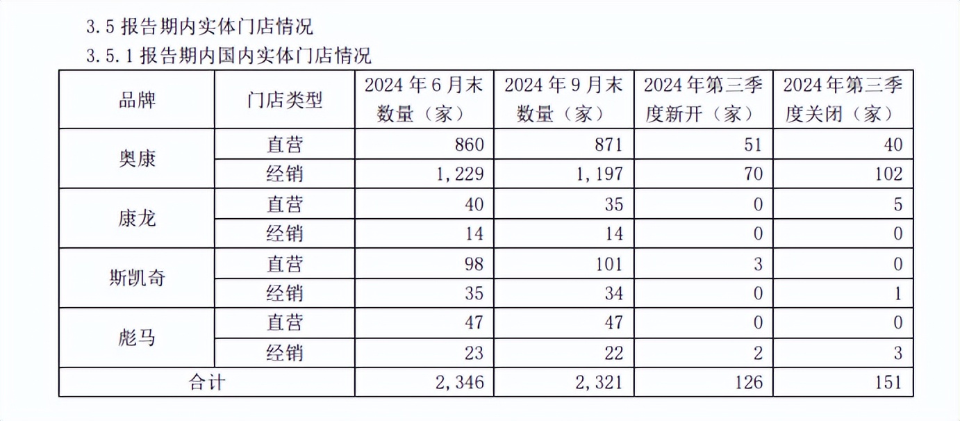 截至2024年9月末,奥康门店量仅剩2321家。其中斯凯奇门店数135家,2020年末为157家。而线上销售规模也没“支棱”起来。三季报显示营收4.08亿元,同比下滑5.16%,虽降幅好于线下,可营收占比不足25%。