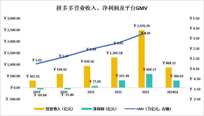 2024年5月22日,拼多多发布2024年一季度财报,净利润同比增幅超200%的靓丽业绩助推市值超越阿里巴巴,成为中国传统电商平台的新王。