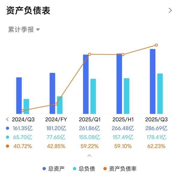 名创优品完成收购永辉超市后,对公司财报的一大影响是负债率大幅提升。2024年末,其资产负债率仅40%出头,到2025年一季度末,资产负债率飙升至约60%,总负债翻了一倍。