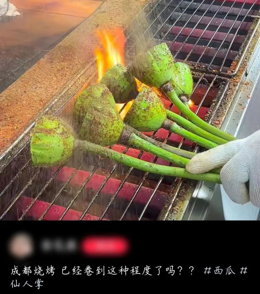 烤仙人掌、烤莲蓬、烤西瓜……成都烧烤真的是太超前了。