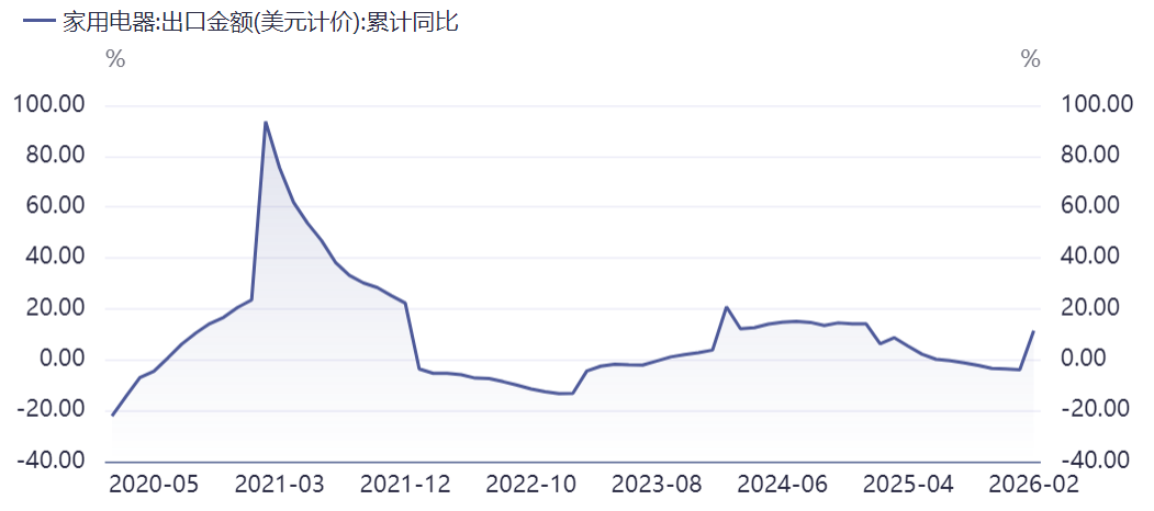 图片说明:家电出口金额累计同比,数据来源于同花顺