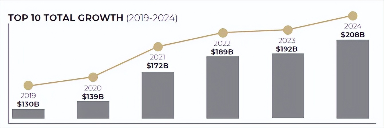 图片说明:全球十大品牌授权增速,数据来源于国际授权业协会