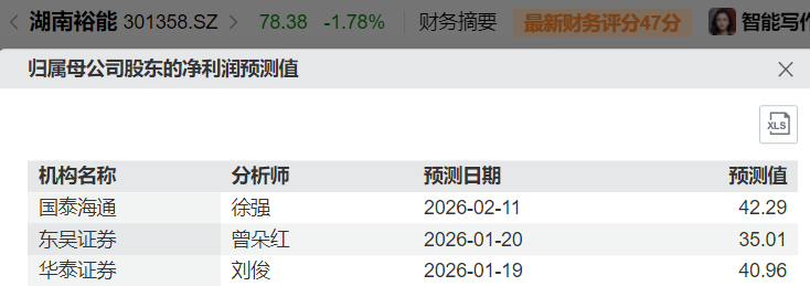 中游磷酸铁锂正极材料。以市值最高的湖南裕能(301358.SZ)为例,市值610亿元,按下图中的平均值计算,2026年预期净利润39.42亿元,对应动态PE为15.47倍。