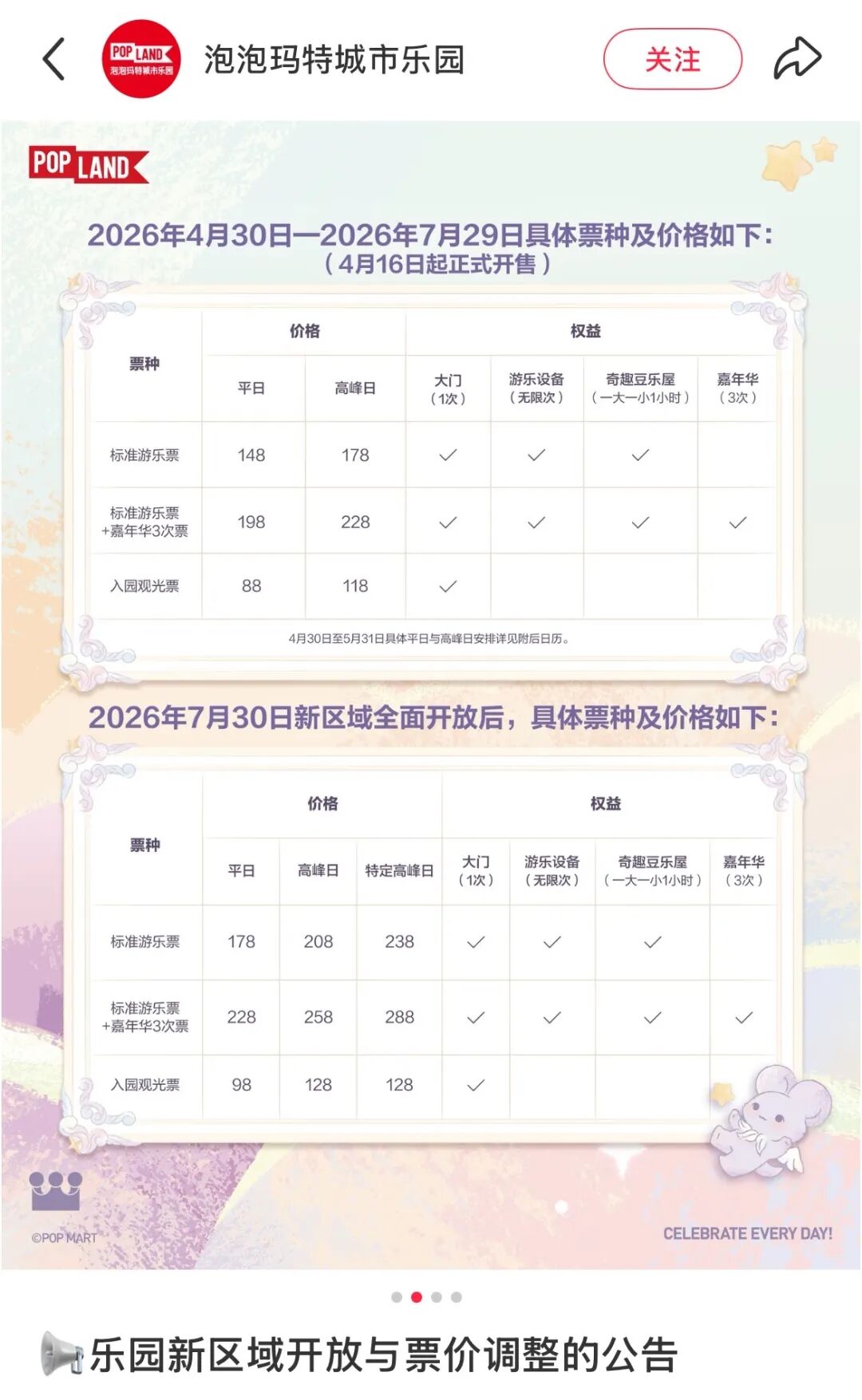 环球、迪士尼不敢轻易涨的价,泡泡玛特城市乐园先涨了。