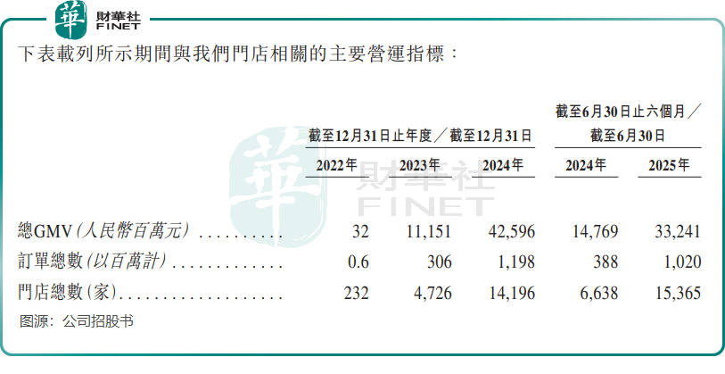 随着门店的扩大,公司的GMV和订单总数亦一飞冲天,今年上半年总GMV达332.41亿元,2025年前8个月的交易总量约为15亿笔,高于2024年全年的12亿笔。