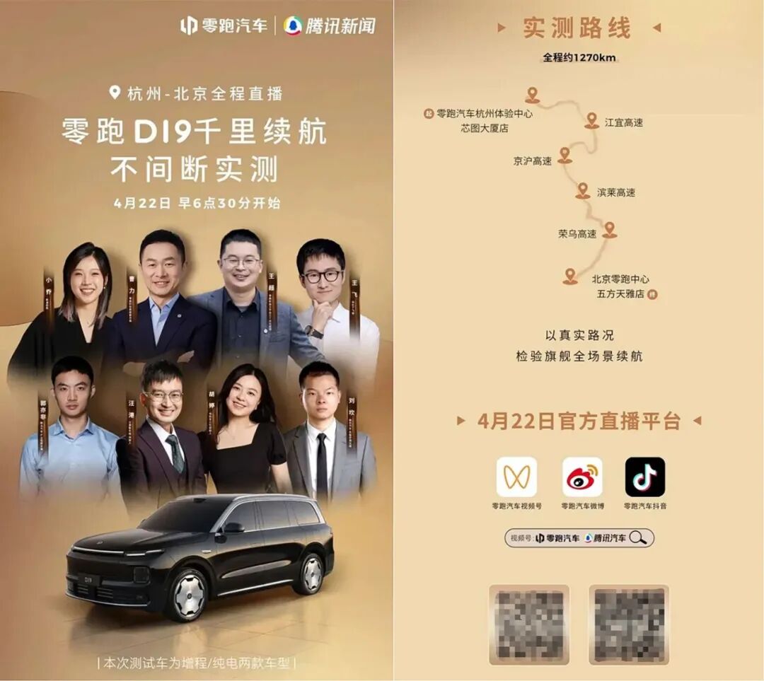 而就在今天,4月22日,零跑D19“致敬”小米汽车,从杭州到北京,跨越近1300km,以真实路况,检验旗舰全场景续航。
