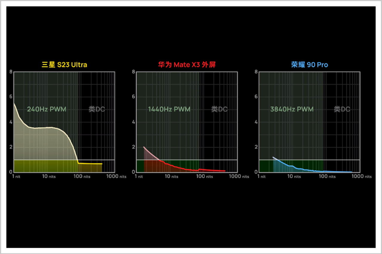 当我们提高调光频率时,屏幕的显示驱动IC、驱动电路等也要随之升级,同时还要兼顾屏幕的显示效果。