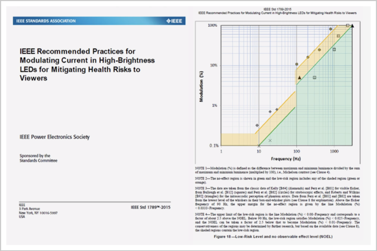 理论上,灯光作为很多环境下唯一的光源,其频闪对人眼健康的风险更大。所以,照明的行业标准,相较而言,更加严苛。