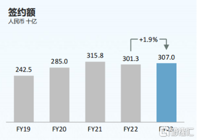 仅从开发销售型业务来看,核心竞争力不断提升。财报显示,过去一年,华润置地实现签约额3,070.3亿元,同比增长1.9%,行业排名稳居第四。